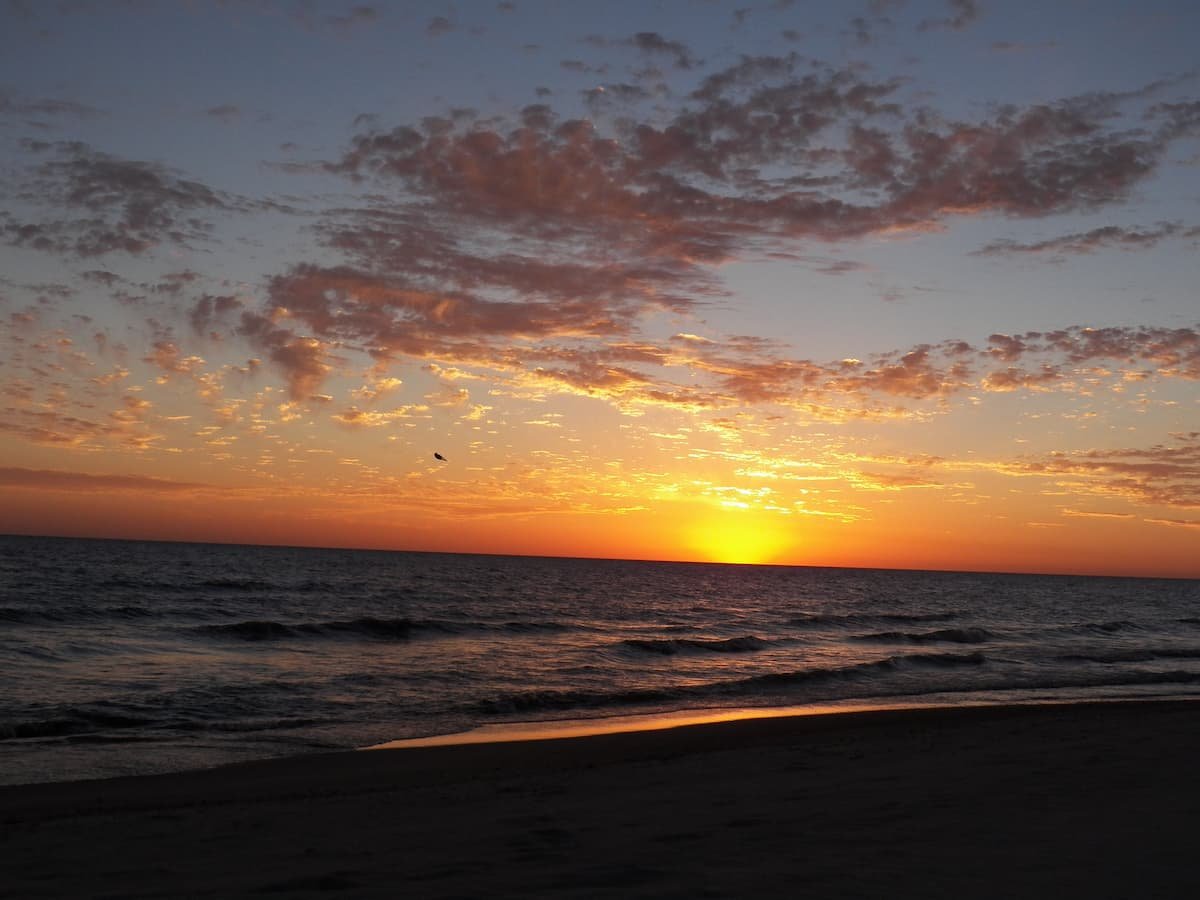 Puesta de sol dorada en las tranquilas playas de Colonia, Uruguay, donde el Río de la Plata se funde con la historia colonial para crear una atmósfera única